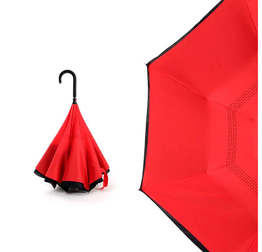 Зонт-трость механический обратного сложения Chaplin выполнен из двухслойной двухцветной ткани эпонж.