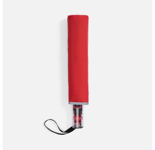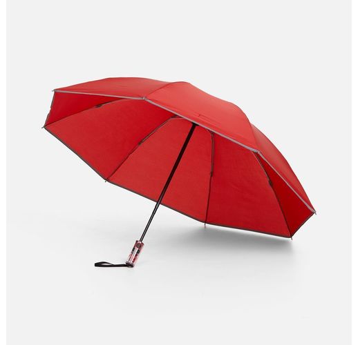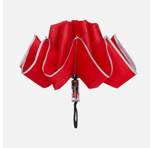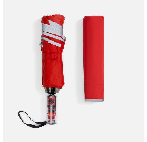 Складной зонт Futurum привлекает внимание оригинальным дизайном. Складываясь после дождя, он прячет мокрую поверхность в себя, а сухая остается снаружи. Светоотражающий кант и ручка из прозрачного пластика, не скрывающая ярких деталей внутри, добавляют внешнему виду зонта футуристичности.
