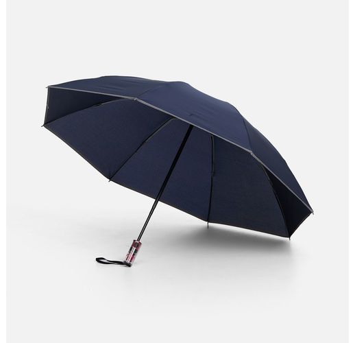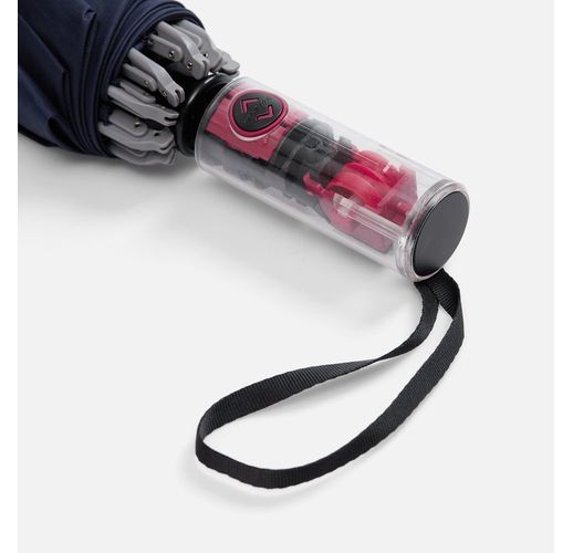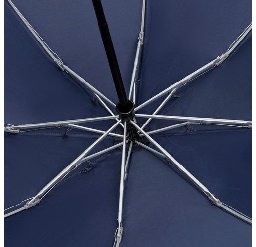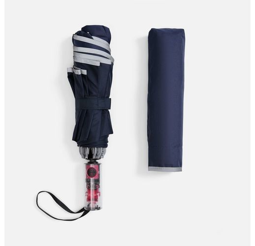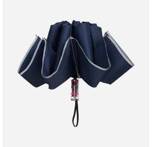 Складной зонт Futurum привлекает внимание оригинальным дизайном. Складываясь после дождя, он прячет мокрую поверхность в себя, а сухая остается снаружи. Светоотражающий кант и ручка из прозрачного пластика, не скрывающая ярких деталей внутри, добавляют внешнему виду зонта футуристичности.