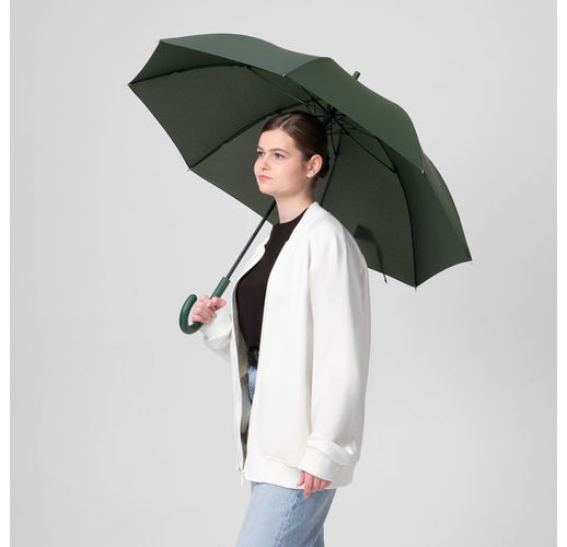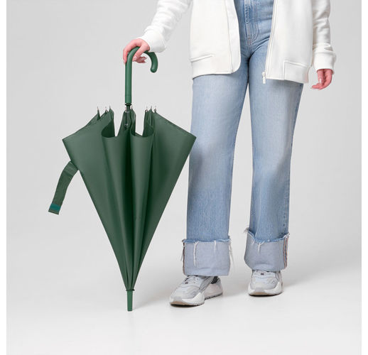 Удобная ручка в цвет купола зонта. PU-покрытие на ручке зонта обеспечивает комфортное и долговечное использование аксессуара: оно устойчиво к истиранию, не скользит в руке и не становится липким.