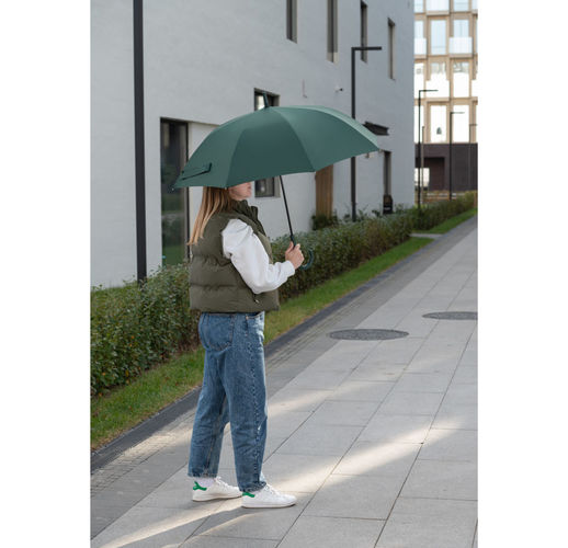 Зонт оснащен системой антиветер, что позволяет спицам не ломаться даже при сильном порыве ветра.
