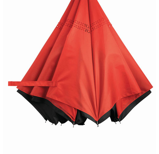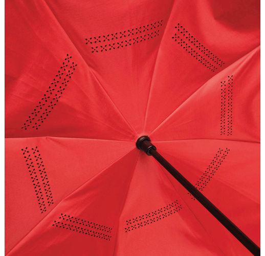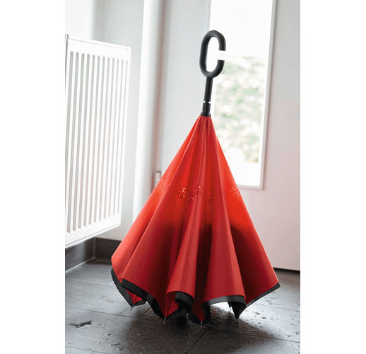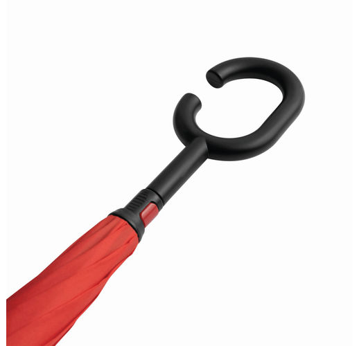 Реверсивный зонт-трость FLIPPE: с обратным механизмом открывания и закрывания, с предохранительным бегунком, свободные руки благодаря С-образной ручке, двойная крышка с вентиляционной конструкцией для предотвращения застревания воздуха, металлический стержень и ребра из стекловолокна, с металлическими наконечниками, навес из полиэстера и эпонжа, закрытие на липучке