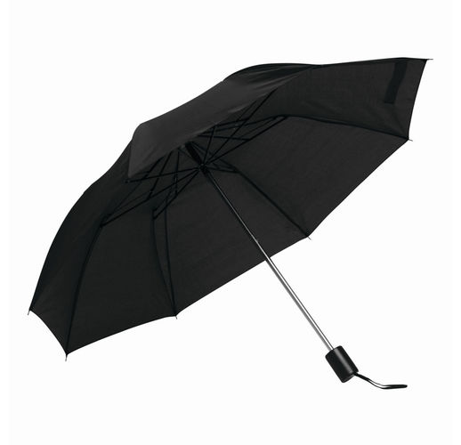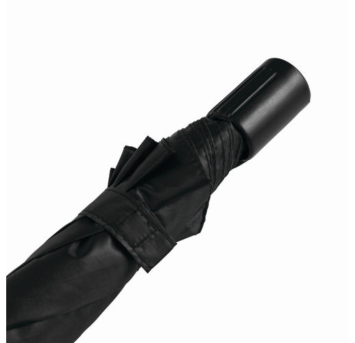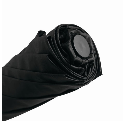 Карманный зонт REGULAR с ручным открыванием, двухсекционный металлический стержень и металлические ребра, черная пластиковая ручка с навесом из полиэстера, застежка на липучке