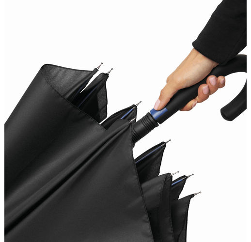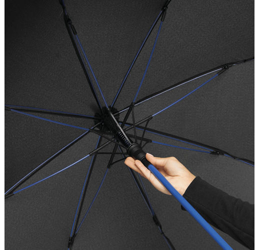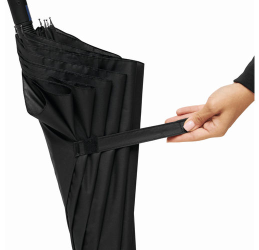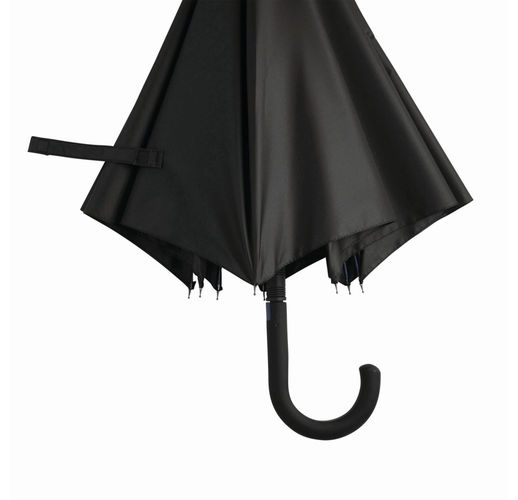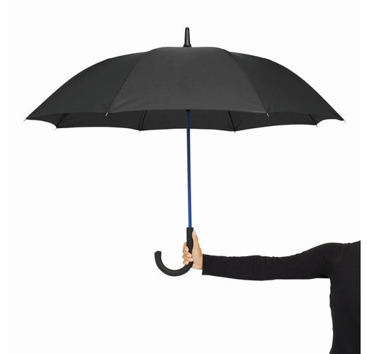 Зонт с автоматической ручкой CANCAN: металлический стержень и ребра из стекловолокна подобранного цвета, с металлическими наконечниками, прорезиненная изогнутая ручка с автоматической кнопкой соответствующего цвета, капюшон из полиэстера-эпонжи, застежка на липучку