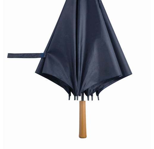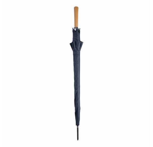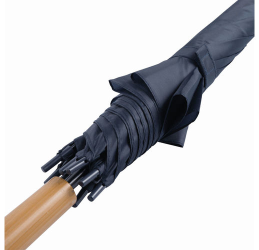 Зонт с автоматической ручкой LIMBO: металлический стержень и ребра, пластиковые наконечники того же цвета, деревянная ручка, капюшон из полиэстера, застежка на липучке