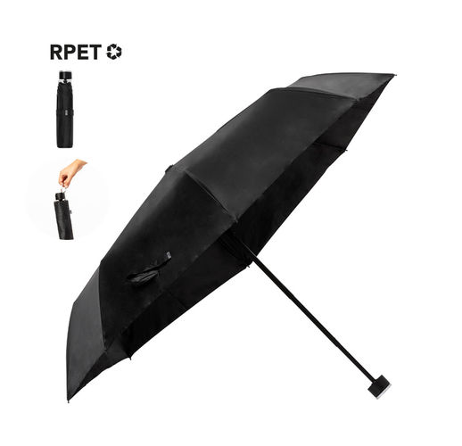 Складной зонт диаметром 98 см из материала 190T RPET понж. Ручное открывание, с ветрозащитным механизмом и стекловолоконными ребрами. Эргономичная ручка, с чехлом и застежкой на липучке.