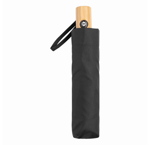 Автоматический ветрозащитный карманный зонт CALYPSO с чехлом соответствующего цвета: 3-секционный металлический стержень с ребрами жесткости из металла / пластика / стекловолокна и металлическими наконечниками, бамбуковая ручка с петлей для переноски соответствующего цвета, навес из полиэстера pongee, изготовленный из переработанного пластика (глобальный стандарт утилизации), застежка на липучке