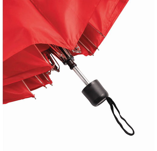 Карманный зонт PICOBELLO с трехкомпонентным металлическим стержнем, металлическими ребрами жесткости, черной пластиковой ручкой и капюшоном из полиэстера, застежка на липучку.