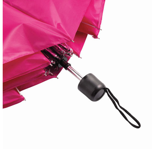 Карманный зонт PICOBELLO с трехкомпонентным металлическим стержнем, металлическими ребрами жесткости, черной пластиковой ручкой и капюшоном из полиэстера, застежка на липучку.
