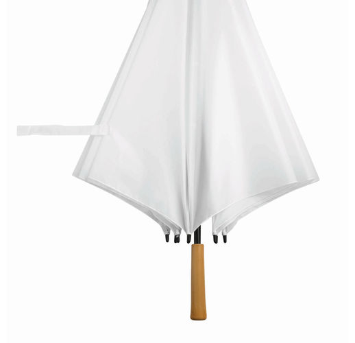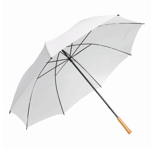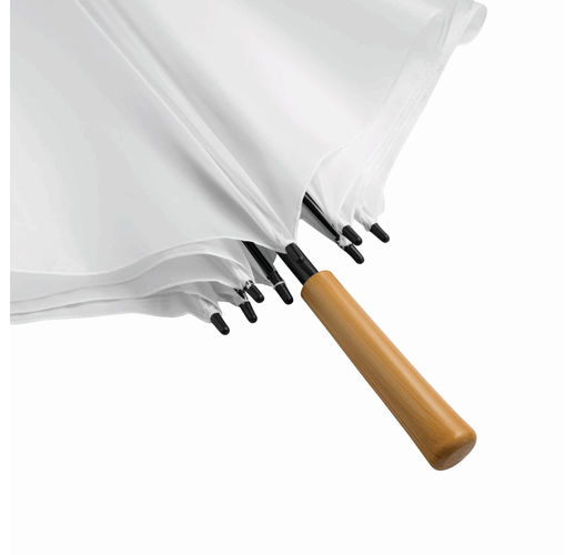 Зонт для гольфа RAINDROPS: металлический стержень и двойные металлические ребра, пластиковые наконечники, ручка с деревянным покрытием, капюшон из полиэстера, застежка на липучке