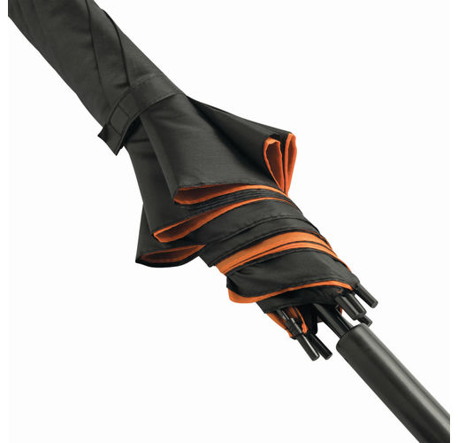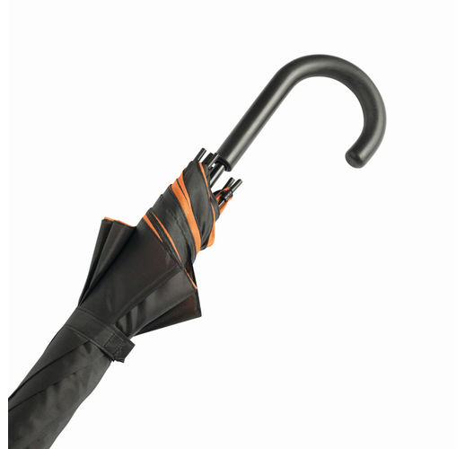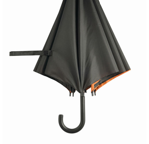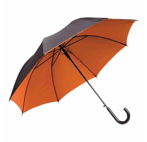 Зонт с автоматической ручкой ДВОЙНОЙ с металлическим стержнем, пластиковыми наконечниками и изогнутой ручкой, двухслойный двухцветный капюшон, полиэстер, застежка на липучке