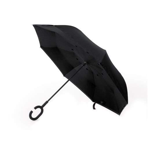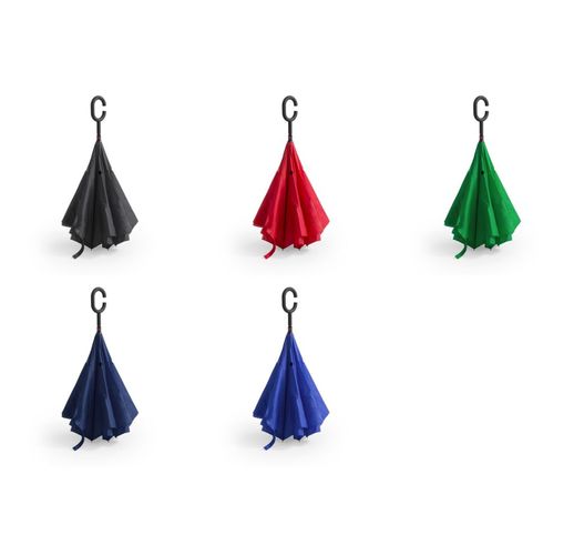 Особенности 8-панельный реверсивный зонт, изготовленный из прочного красочного материала pongee с оригинальной ручкой без рук. 108 см в диаметре, с ручным открыванием, волокнистыми ребрами жесткости и застежкой на липучку. Понджи