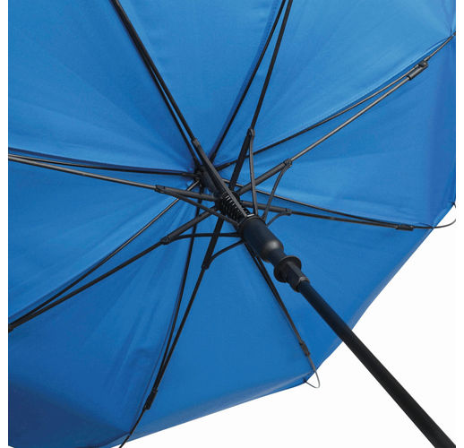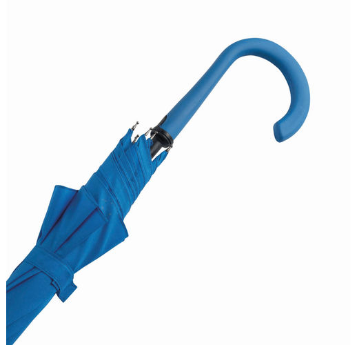 Автоматический зонт LAMBARDA с металлическим стержнем, ребрами из стекловолокна, металлическими наконечниками, изогнутой ручкой с прорезиненным покрытием и встроенной кнопкой, капюшоном из полиэстера со специальным водостойким покрытием, застежкой на липучке