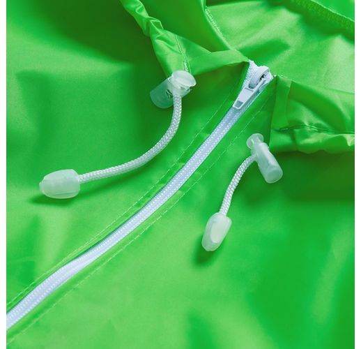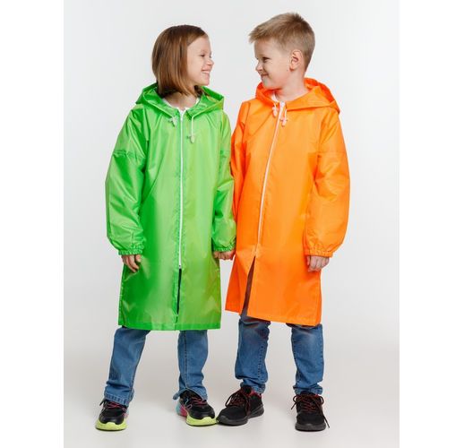 Детский дождевик на молнии из таффеты с влагозащитным покрытием. Складывается в мешочек —  удобно брать с собой.