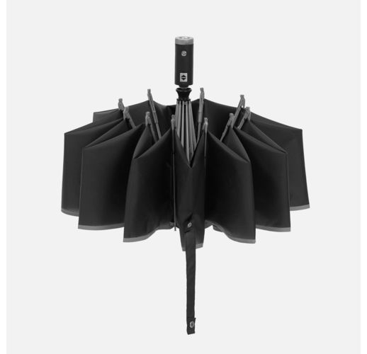 Светодиодный фонарик, встроенный в ручку зонта, осветит дорогу в темноте и не даст наступить в лужу. Светоотражающий кант по куполу делает вас видимым для водителей в свете фар, превращая зонт в активный элемент безопасности на ночных улицах. Механизм обратного сложения прячет мокрый купол внутрь, оставляя снаружи только сухую поверхность — никаких капель на одежде, в машине или в общественном транспорте. Прочный ветроустойчивый каркас и плотное водоотталкивающее полотно надежно защитят от самого сильного ливня и порывистого ветра.