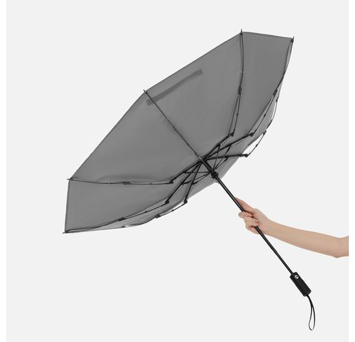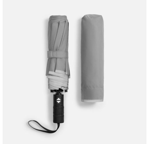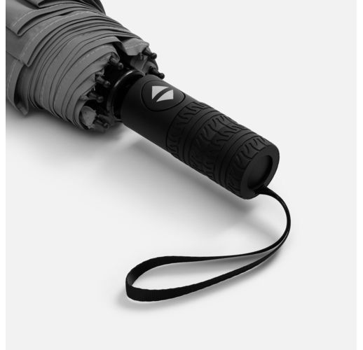 Стильный прочный зонт Tyre не боится ржавчины и нагрузок благодаря каркасу из стекловолокна. Светоотражающий кант делает этот зонт незаменимым спутником в темное время суток, а тактильный рисунок протектора шины на ручке превращает его в продуманный подарок для автолюбителей и партнеров автомобильной сферы.