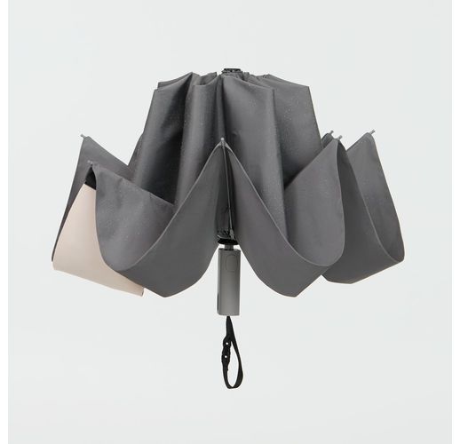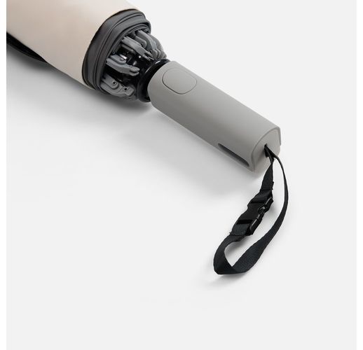 Складываясь после дождя, он прячет мокрую поверхность внутри, а сухая остается снаружи: в закрытом положении зонт не побеспокоит окружающих и не намочит одежду. Благодаря застежке на ремешке зонт удобно подвесить, например, на рюкзак.