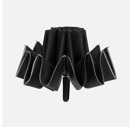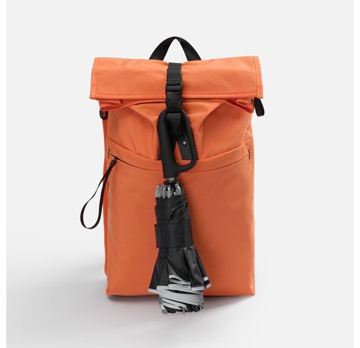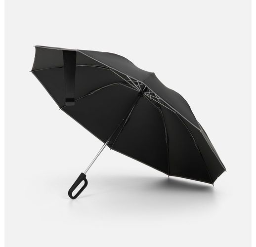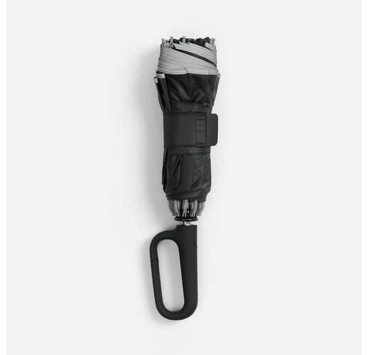 Складываясь после дождя, он прячет мокрую поверхность внутри, а сухая остается снаружи — в закрытом положении зонт не побеспокоит окружающих и не намочит одежду. За ручку-карабин зонт удобно подвесить, например, на рюкзак.