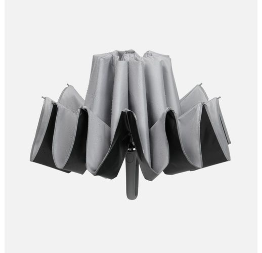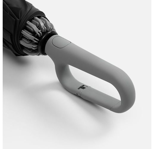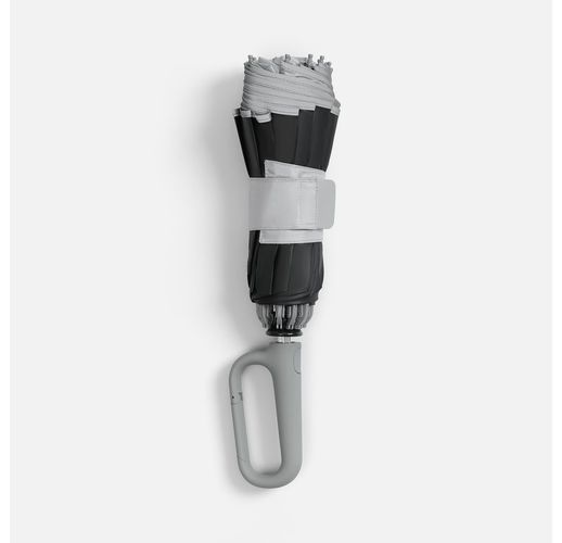 Складываясь после дождя, он прячет мокрую поверхность внутри, а сухая остается снаружи — в закрытом положении зонт не побеспокоит окружающих и не намочит одежду. За ручку-карабин зонт удобно подвесить, например, на рюкзак.