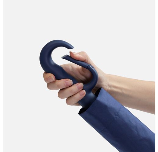 Преимущество обратного сложения заключается в том, что при закрытии внутренняя поверхность зонта остается снаружи, а мокрая сторона — внутри. За ручку-карабин удобно подвесить зонт на рюкзак или сумку.