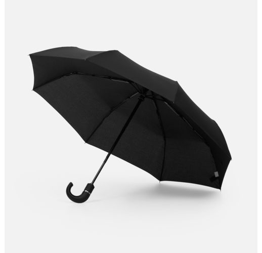 Классический складной зонт-автомат с эргономичной J-образной ручкой — надежный компаньон в дождливые ветреные дни.