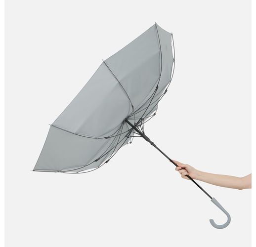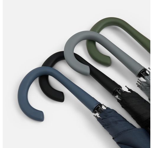 Современная модель зонта-трости с эргономичной ручкой, каркасом из стеклопластика и увеличенным размером купола.