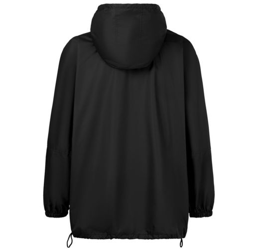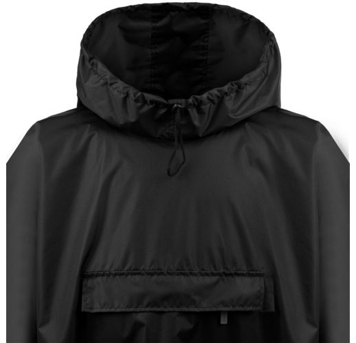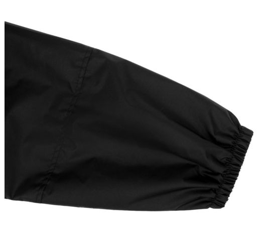 Дождевик-анорак с капюшоном и карманом на молнии спереди. Выполнен из ткани дюспо с матовой поверхностью — легкой, мягкой на ощупь, но устойчивой к повреждениям. Она не шелестит и практически не мнется. Благодаря пропитке дюспо обладает отличными водоотталкивающими и ветрозащитными свойствами.